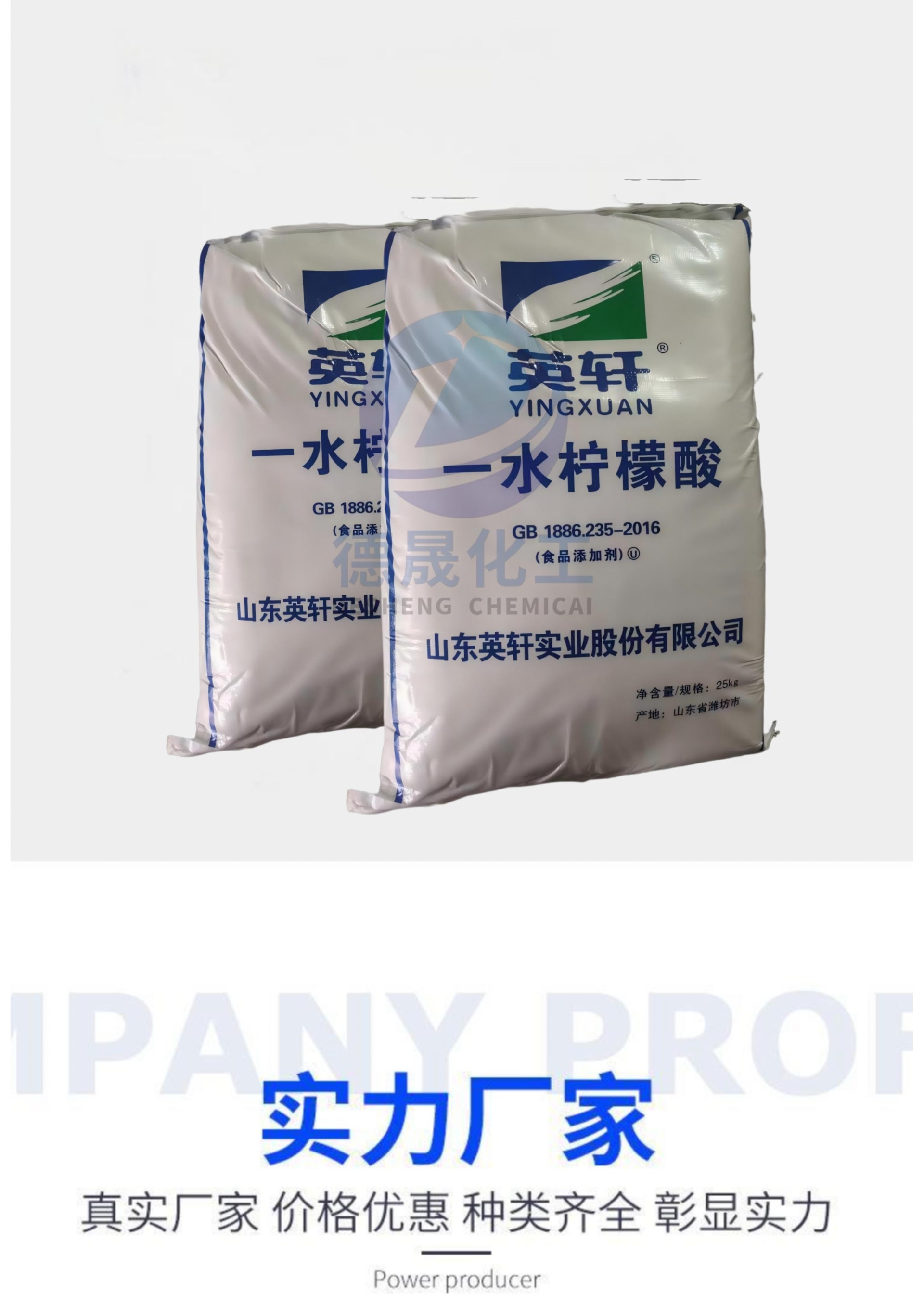 化學名:2 - 羥基丙烷 - 1,2,3 - 三羧酸一水合物